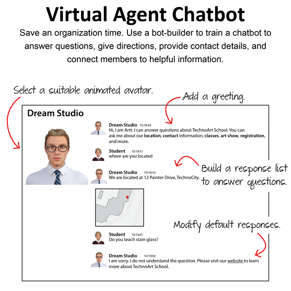 Students use the bot-builder app, Bot Libre, to design a virtual agent for a school or an organization. It will provide help to a new student or member. The chatbot will use natural language processing to answer common questions, provide directions, connect a user to information sources, and more. To start, they select a topic such as a local drama club, sports team, or art class. Next, they create a bot and then chat with it to discover what it does and does not know. Afterwards, they select an animated avatar and voice that will appeal to users. An extension activity emphasizes the need to be a responsible digital citizen by examining the Bot Libre terms of use and privacy policy.